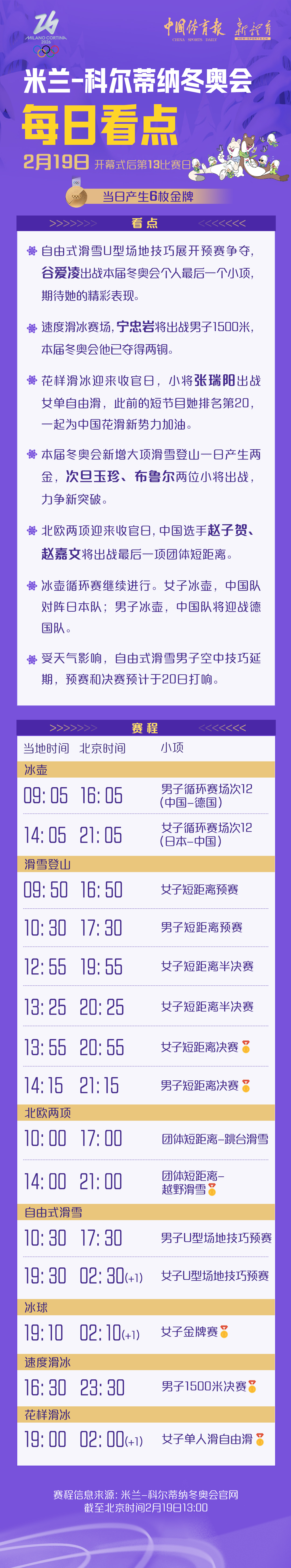 冰壶循环赛继续进行。女子冰壶,中国队对阵日本队;男子冰壶,中国队将迎战德国队。
