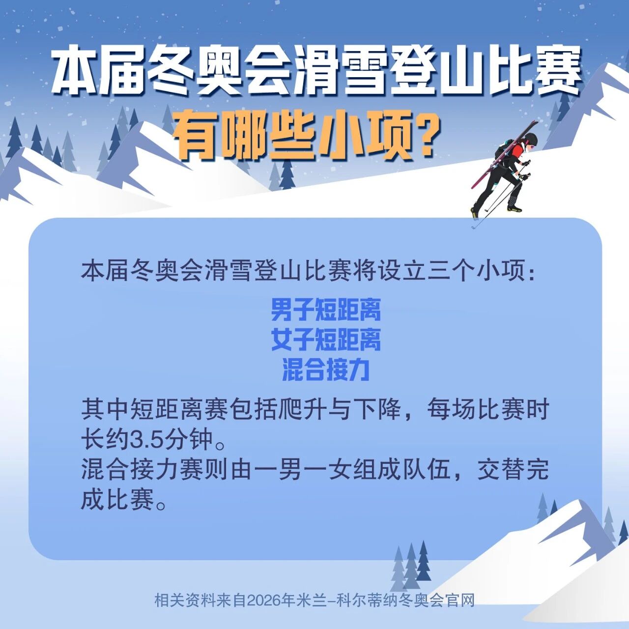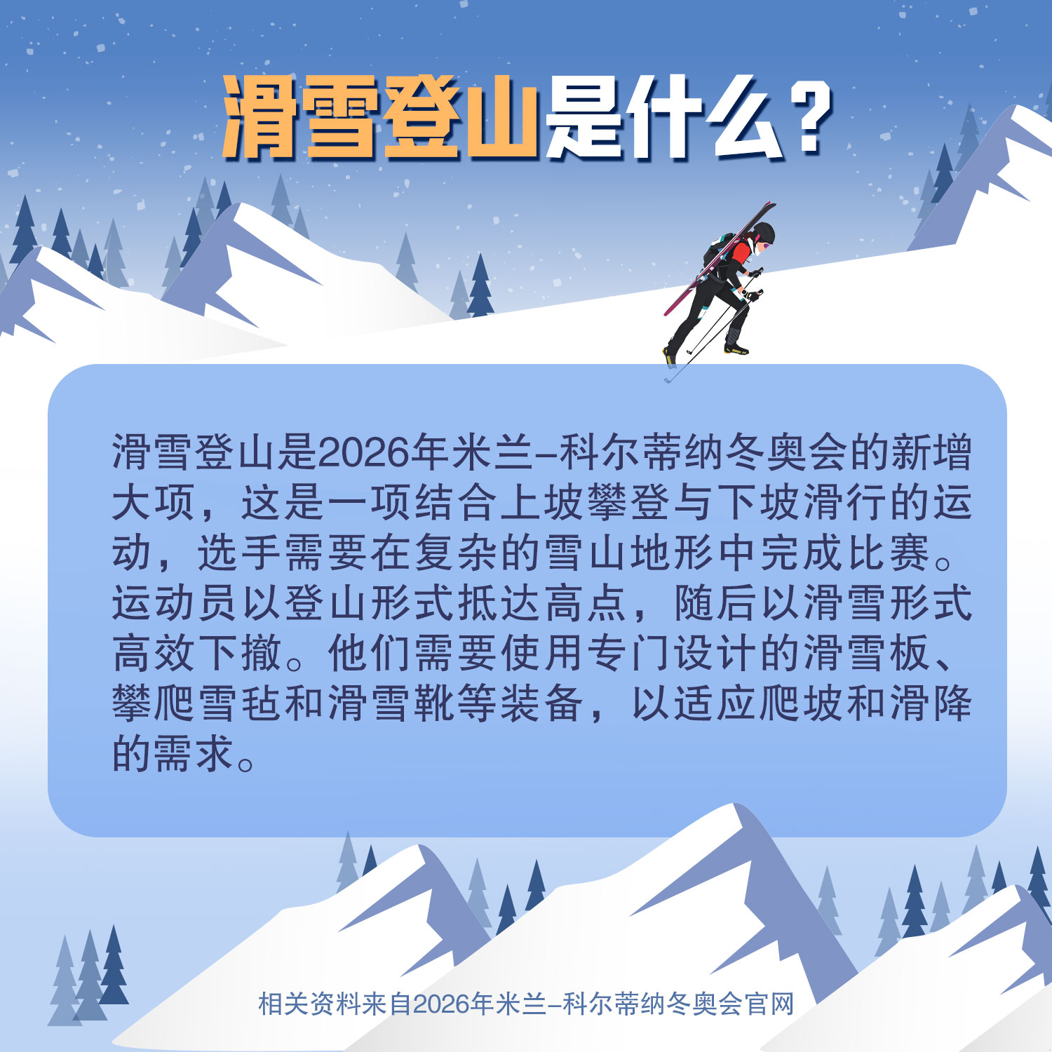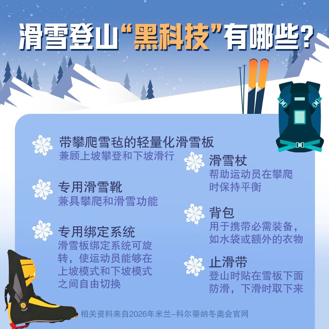 作为米兰冬奥会的新增大项,滑雪登山是什么?设哪些小项?装备有哪些“黑科技”?比赛滑雪板多长?一起来看看吧!