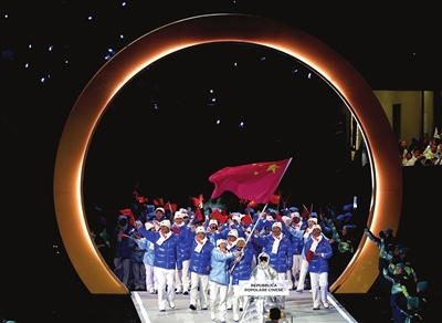 中国体育代表团共286人,其中运动员126人,将参加7个大项、15个分项、91个小项的角逐,创下中国冬奥会境外参赛项目最多、运动员规模最大的新纪录。开幕式上,速度滑冰运动员宁忠岩和短道速滑运动员张楚桐共同担任中国代表团旗手,引领队伍入场。