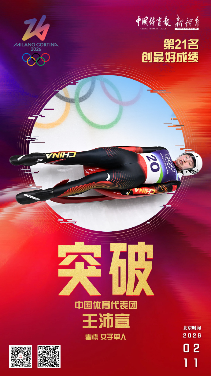 女子单人雪橇项目中,第二次参加冬奥会的中国选手王沛宣两轮滑行总成绩为1分48秒357,暂列第21位。