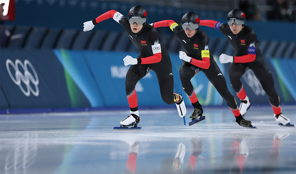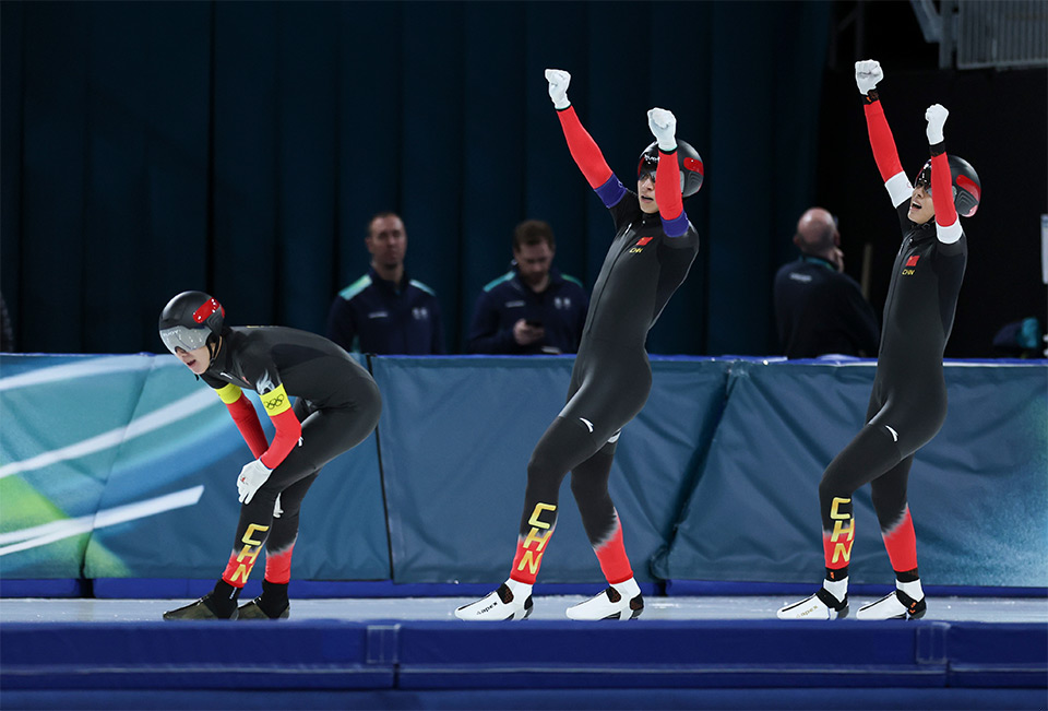 本场比赛,中国队直面两届冬奥会卫冕冠军挪威队。小伙子们毫无惧色、敢打敢拼,严格执行既定战术,配合堪称完美。刘瀚彬位居首位掌控滑行节奏,吴宇在第二梯队衔接推进,李文淏滑在第三位稳住路线、带动速度。三人同心协力完成八圈的滑行,全程队形紧凑、节奏稳定,用出色的表现征服了赛场与观众。