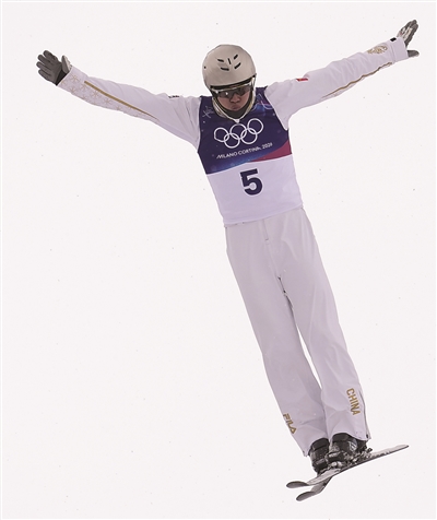 由于天气原因,原定于17日进行的比赛一推再推,最终在20日一天完成预赛和决赛的比拼。中国队由卫冕冠军、五战冬奥会的齐广璞领衔,其他三人为王心迪、李天马、孙佳旭。预赛第一轮,大家以稳定为主,没有使用高难度动作,老将齐广璞发挥出色,高质量完成4.425的难度动作,以120.80分排名第二;王心迪成功完成4.525的难度动作,以118.10分排名第三,二人直接晋级决赛。孙佳旭和李天马落地没有控制好重心出现了失误,需要参加预赛第二轮争夺。卸下包袱后,两人放手一搏,均成功完成动作,尤其是李天马成功做出5.100的高难度动作,获得了127.50分排名第七,孙佳旭以118.55分位列第八,中国队四位队员携手晋级决赛。